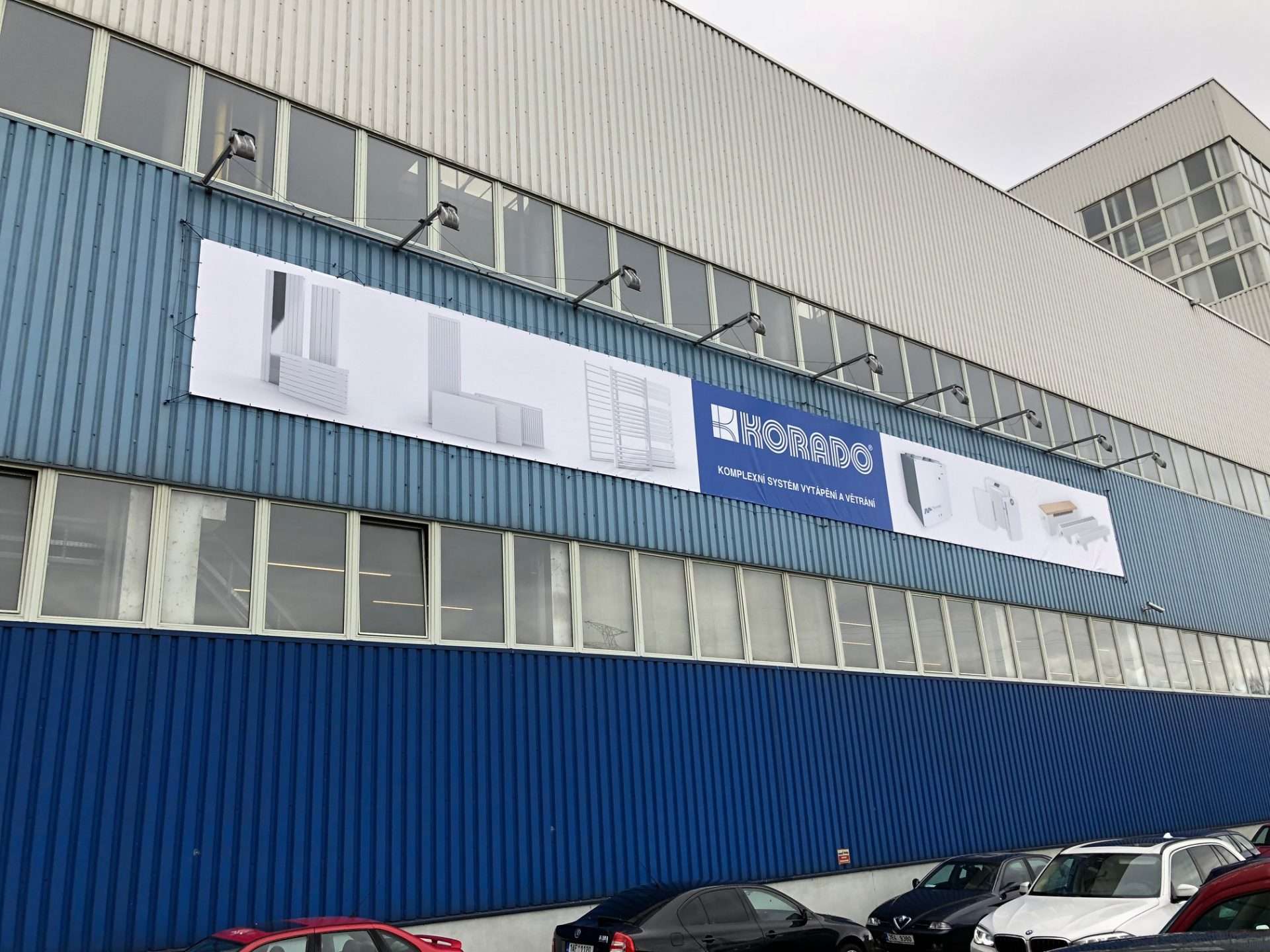 V minulých dnech jsme zrealizovali náročné zavěšení obrovských reklamních bannerů pro našeho zákazníka Korado z České Třebové. Jednalo se o 2 bannery velikosti skoro 200m2 plochy, které se musely připevnit ze střechy našimi horolezci. Vše dopadlo dobře a výsledek je perfektní.